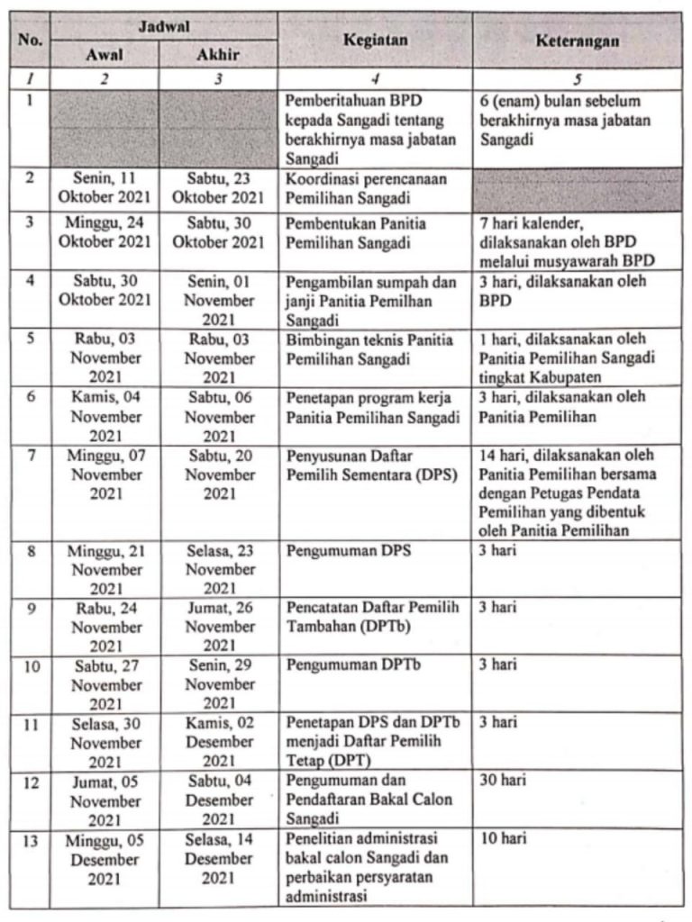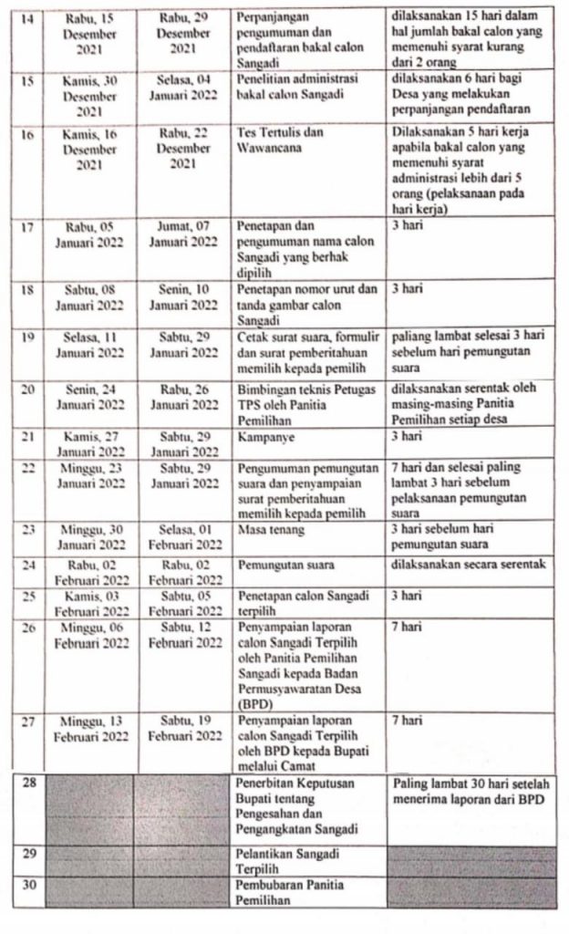 Jadwal Pilkades Bolmong tersebut seperti yang terlihat pada surat yang ditandatangani oleh Sekretaris Daerah (Sekda) Bolmong Tahlis Gallang, bernomor 100/D.24/DPMD/244/X/2021 tertanggal 22 Oktober 2021.