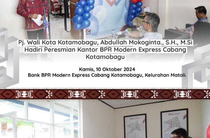 “Bagi Pemerintah Kota Kotamobagu kegiatan peresmian ini juga merupakan kegiatan yang sangat strategis, karena selain merupakan bukti akan iklim investasi dan ekonomi di Kota Kotamobagu yang terus mengalami kemajuan, peresmian kantor cabang BPR Modern Express di daerah ini, juga diharapkan dapat mendorong pertumbuhan ekonomi di daerah ini,”.
