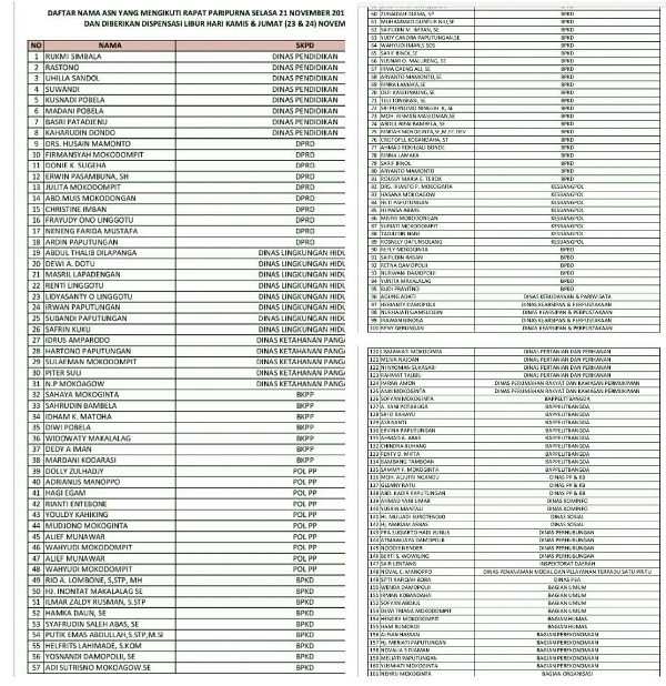 Plt Kepala Badan Kepegawaian Pendidikan dan Pelatihan Kota Kotamobagu Sahaya Mokoginta mengatakan, hal tersebut dilakukan atas petunjuk Wali Kota Kotamobagu Tatong Bara.