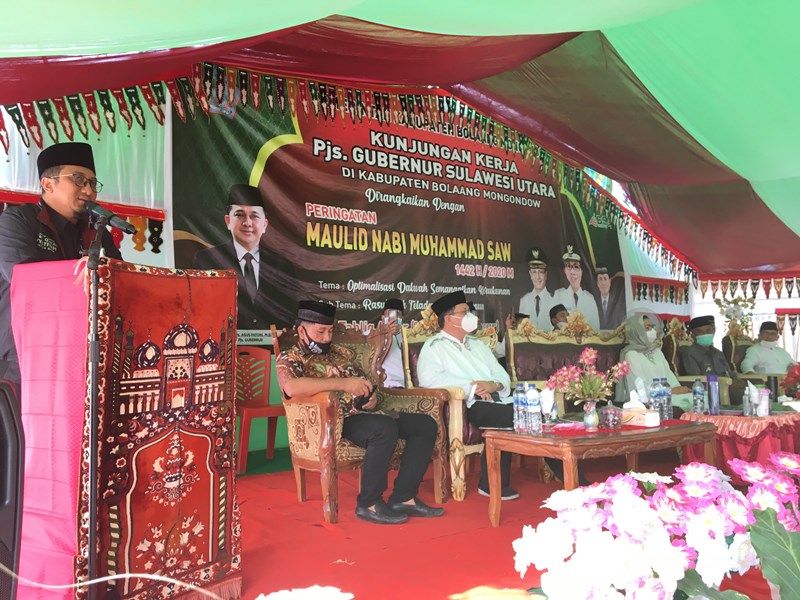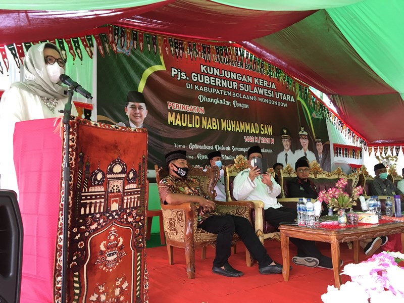 Bupati Bolmong Yasti Soepredjo Mokoagow, dalam sambutannya mengajak untuk merenungkan, mengapresiasi dan meneladani perjuangan Nabi Muhammad SAW dalam membangun tatanan kehidupan baru di Mekkah dan Madinah, Arab Saudi.