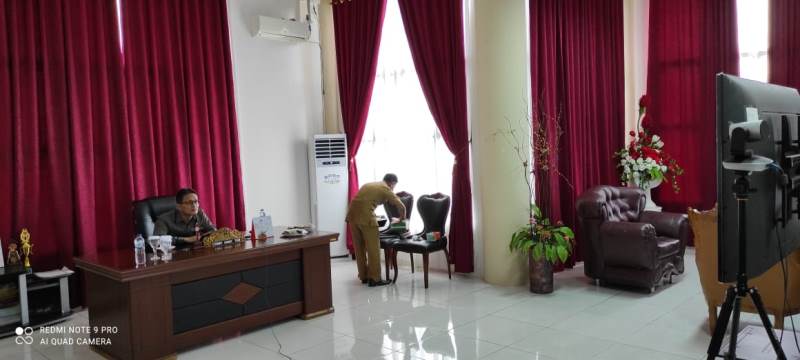 Dalam rapat yang digelar secara virtual tersebut, Wabup Yanny didampingi Kepala Dinas Kesehatan dr. Erman Paputungan.