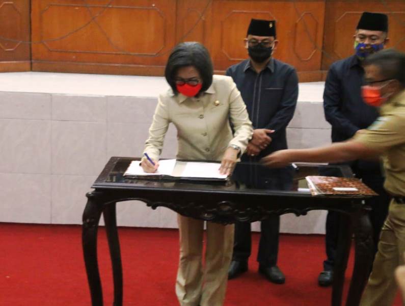 “Untuk itu, dengan ditetapkannya Ranperda tentang APBD tahun anggaran 2021 pada hari ini, maka atas nama pemerintah daerah menyampaikan ucapan terima kasih dan penghargaan kepada pimpinan dan segenap anggota DPRD, yang telah selesai membahas, memberikan masukan, koreksi dan saran positif terhadap penyempurnaan rancangan peraturan daerah ini. Sehingga, pada hari ini ditetapkan menjadi Perda,” ungkap bupati.