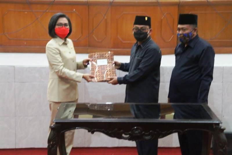 “Walaupn di masa pandemi Covid-19 ini, namu dua lembaga pemerintah ini masih tetap komit menjalankan tugas untuk mengikuti rapat paripurna, dengan agenda pembicaraan tingkat II, penetapan persetujuan atas Ranperda tentang APBD tahun anggaran 2021,” ucap bupati.