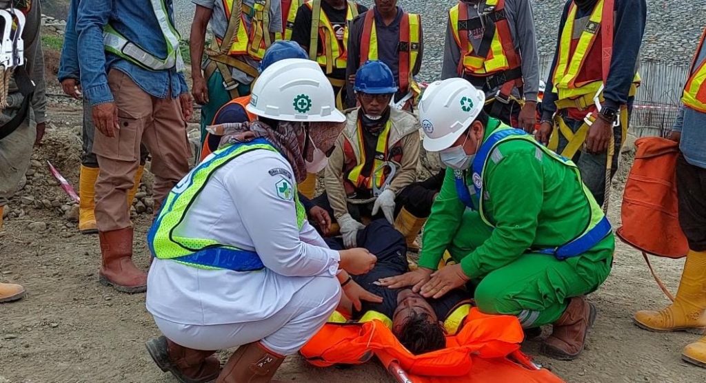 Gelar Simulasi, PT PP Bendungan Lolak Edukasi Pekerja Tentang Kecelakaan Kerja