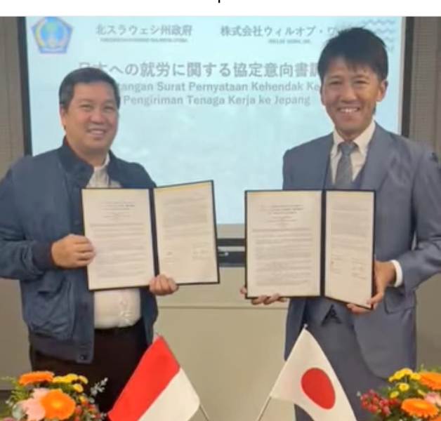 Wagub Sulut Tandatangani Kerja Sama dengan Wilof Work Japan Terkait Penambahan Naker