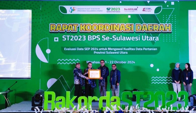 BOLMORA.COM , BOLTIM – Penjabat sementara (Pjs)Bupati Bolaang Mongondow Timur (Boltim), Lukman Lapadengan, menerima penghargaan Indeks Pembangunan Statistik 2024 dengan predikat “Kategori Baik”. Penghargaan tersebut diterima langsung oleh Bupati Lapadengan bersama Ketua DPRD Samsudin Dama dalam acara Rapat Koordinasi Daerah (Rakorda) Sensus Pertanian ST2023 yang digelar oleh Badan Pusat Statistik (BPS) se-Sulawesi Utara (Sulut). Senin, (21/10/2024), di Mercure Manado Tateli Beach Resort.