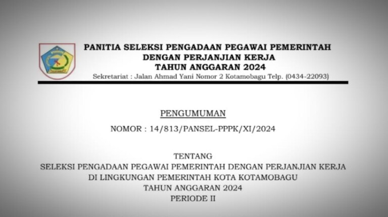 KOTAMOBAGU– Pemerintah Kota Kotamobagu kembali membuat seleksi Pegawai Pemerintah dengan Perjanjian Kerja (PPPK) tahun 2024 untuk periode kedua.
