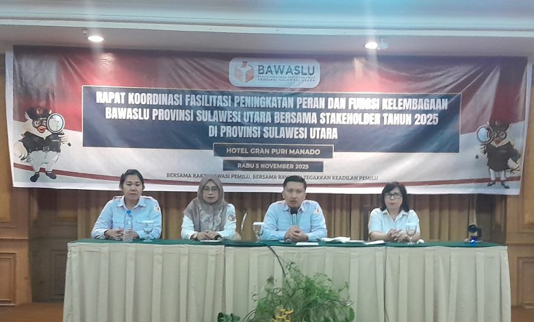 BOLMORA.COM, SULUT – Kepala Sekretariat Badan Pengawas Pemilu (Bawaslu) Provinsi Sulawesi Utara, Aldrin Christian buka kegiatan pelaksanaan Rapat Koordinasi (Rakor) Fasilitasi Peningkatan Peran dan Fungsi Kelembagaan Bawaslu Provinsi Sulawesi Utara bersama Stakeholder Tahun 2025 di Hotel Grand Puri, Manado, Rabu (5/11/2025).