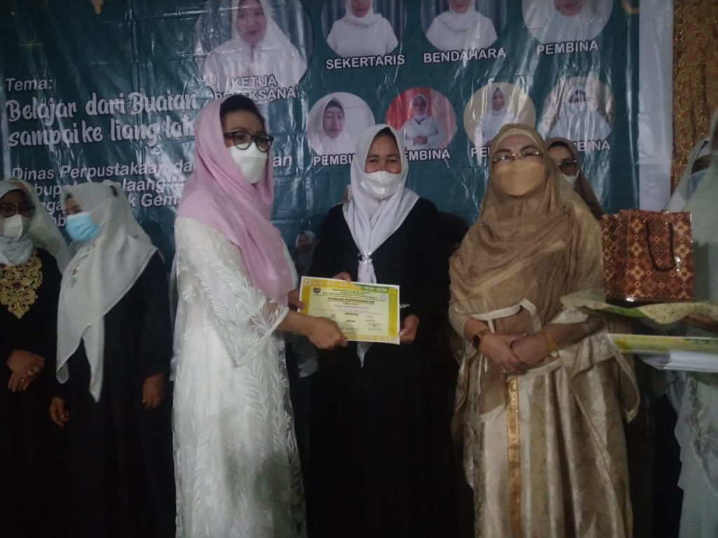 Bupati Bolmong Yasti Soepredjo Mokoagow memberikan apreasiasi atas keberhasilan para anggota majelis taklim yang berhasil dengan melaksanakan proses perjalanan membaca Al Qur’an mulai dari Iqro.