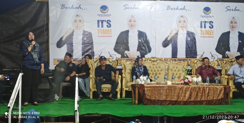 BOLMORA.COM , POLITIK – Calon anggota legislatif Dewan Perwakilan Rakyat Daerah (DPRD) Provinsi Sulawesi Utara (Sulut) daerah pemilihan (dapil) 4 Bolaang Mongondow Raya (BMR) dari Partai NasDem nomor urut 3 Seska Ervina Budiman atau yang akrab disapa SERBU melaksanakan kampanye dialogis di Desa Kayumoyondi, Kecamatan Tutuyan, Rabu (21/12/2023) malam ini.
